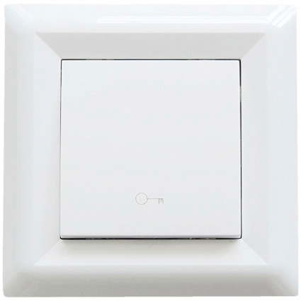 LB Light Softline fehér kapunyitó nyomógomb rejtett szereléshez, 10A, 220V AC, IP21 védelemmel, modern és megbízható kivitelben.