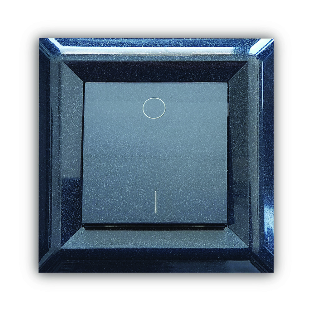 LB Light Softline kétpólusú L+N kapcsoló gyöngyfekete színben, 16A és 230V névleges értékkel, rejtett szereléshez, IP20 védelemmel.