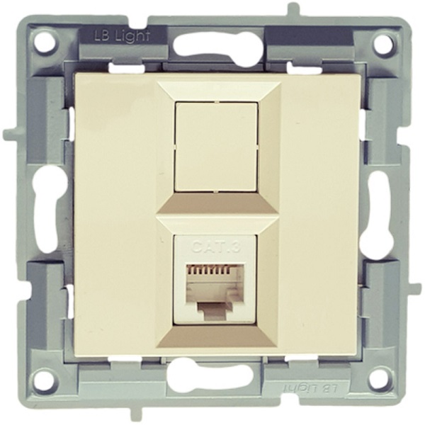 LB Light telefon csatlakozó aljzat RJ45 CAT3 modul mechanizmus és fedél keret nélkül krém.