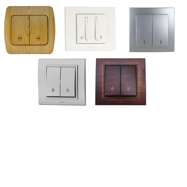 Fehér és színes kivitelű kettős váltókapcsolók, amelyek kényelmes és megbízható áramkörvezérlést biztosítanak, ideálisak otthoni és irodai használatra.